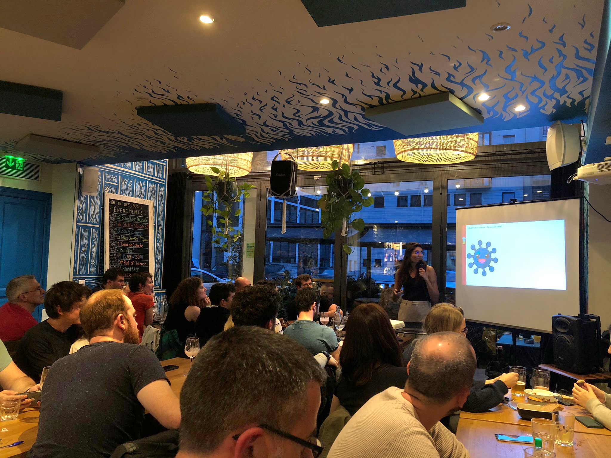 Le 15 mai dernier, au bar Tire-toi une bûche, 40 personnes sont venues comprendre comment on étudie les virus pathogènes en laboratoire.