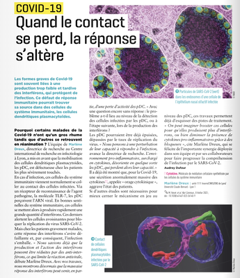 Severe forms of Covid-19 often result from an inefficient and/or late production of type I and III interferons. This cytokines are centre in the host protection against viral infection. The source of this immune response defect could be the cells of the immune system, the plasmacytoid dendritic cells.